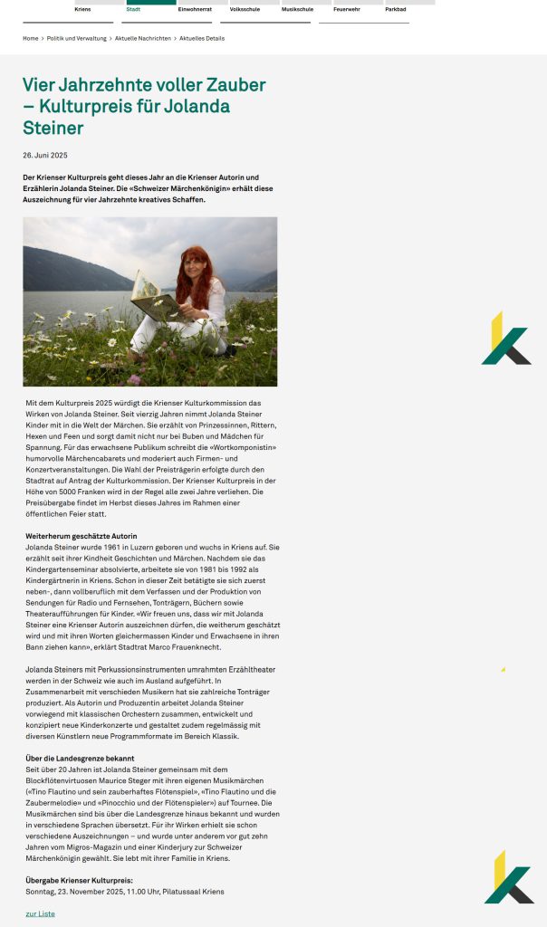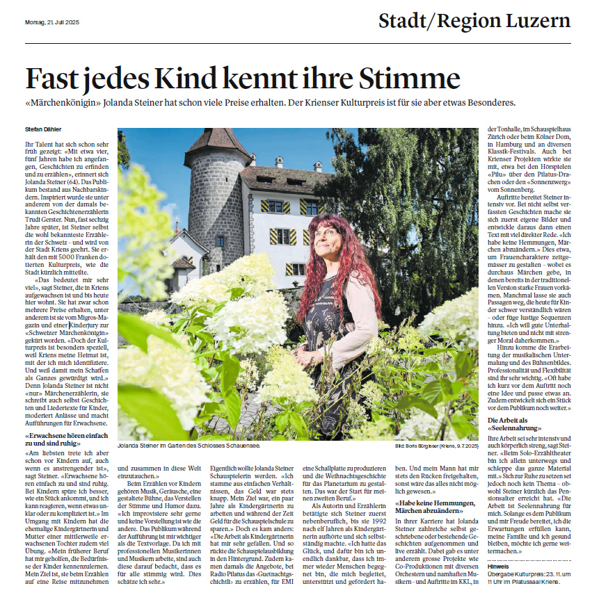 Luzerner Zeitung, https://www.luzernerzeitung.ch/zentralschweiz/stadt-region-luzern/jolanda-steiner-kriens-ehrt-seine-maerchenkoenigin-ld.2790424